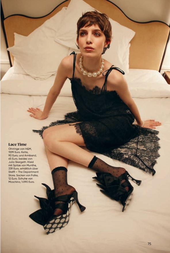 Polka dots with retro charm evoke positive associations with fashion icons of past decades and are currently on trend. They appear feminine and are easy to combine. Austrian Maxima showcases the FALKE Dot ankle socks styled with tulle pumps and a black dress.